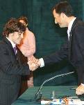 El Príncipe dedicó parte de su intervención a reconocer la labor desarrollada por su padre, Don Juan Carlos, desde que fuese proclamado Rey hace ahora 30 años, y a subrayar los logros alcanzados por la sociedad española en esta etapa, una alusión recibida con un fuerte aplauso del público asistente a la ceremonia. "Creo que es particularmente oportuno rendir un tributo de reconocimiento y gratitud a Su Majestad el Rey, al que junto a tantos españoles de muy diversas generaciones, debemos la construcción de la España democrática de nuestros días", afirmó.