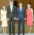 A su llegada a la Moncloa, el Príncipe y su prometida fueron recibidos en la puerta del edificio por Zapatero y su esposa. Las dos parejas posaron unos instantes para los fotógrafos, muy interesados en captar esta imagen nueva, y en reflejar los vestidos color vainilla de la prometida del Príncipe, y color coral del de la esposa del Presidente.