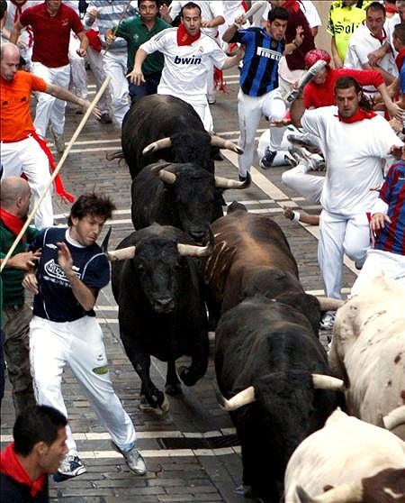 Estirada pero agrupada, la manada ha iniciado este tramo que ha resultado el más peligroso del encierro debido a que los toros perdieron las manos en repetidas ocasiones, aunque los "cebadagago" se han mostrado nobles pese a tener el récord de los corneados en los encierros, con un total de 27 en sus últimas 17 visitas.