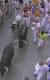 Otro herido fue trasladado igualmente al Hospital Virgen del Camino. Se trata de J.M. Isturiz Seral de 45 años de Pamplona, que sufre policontusiones por pisada de manada y herida en el tobillo. Otras tres personas fueron trasladadas al Hospital de Navarra. J.P.M. de 23 años de Madrid, con una herida en el cuero cabelludo y con pronóstico reservado y otro corredor de 37 años, A.G.H., de la localidad navarra de Amorebieta tiene un traumatismo costal y otro en el brazo. Su pronóstico también es reservado. Por último, el joven que responde a las iniciales J.Z.Z., de 21 años de Bilbao, sufre una erosión en el tobillo con pronóstico igualmente reservado.