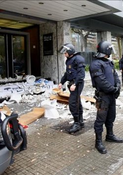 Los empleados se concentraron esta mañana frente a la fábrica de Roca en Gavà (Barcelona) y posteriormente se desplazaron en autocares hasta las oficinas centrales de Roca, en la avenida Diagonal de Barcelona, donde se lleva a cabo otra concentración de protesta.