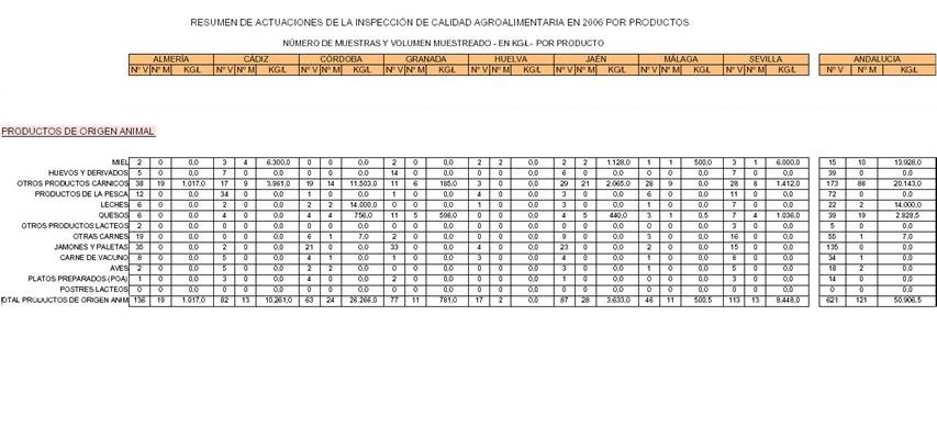 Andalucía cuenta con 203 laboratorios autorizados para realizar análisis de calidad de los diferentes productos agroalimentarios. Pero no se tienen noticias desde 2006 sobre el número de inspecciones realizadas. Este es el cuadro de las que se realizaron en 2006: