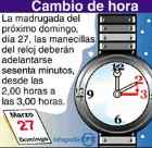 L D (EFE) El cambio se realiza en aplicación de la Novena Directiva que rige el denominado Cambio de Hora, que entró en vigor el año pasado, y que afecta a todos los países miembros de la Unión Europea.