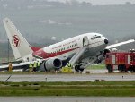L D (EFE) Junto al director del aeropuerto, Eugenio Pérez, el subdelegado del Gobierno en Sevilla ofreció una rueda de prensa en el aeródromo sevillano en la que señaló que en el avión siniestrado, a causa de un fallo en el tren de aterrizaje, viajaban, además de los siete tripulantes, 93 españoles, un mauritano y siete saharauis, cuatro de ellos menores. El avión, un Boeing 737-600 de las líneas aéreas argelinas y procedente de Orán, era el segundo de los dos fletados por familiares que acogen a niños saharauis que habían visitado los campos de refugiados de Tindouf, y el primero de los vuelos llegó previamente al aeropuerto sevillano, con 250 pasajeros, con total normalidad.