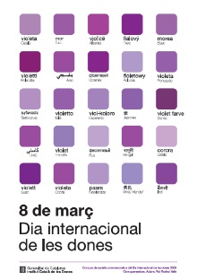 El Instituto Catalán de la Mujer está integrado en la consejería de Acción Social y Ciudadanía, que está liderado por la republicana Carme Capdevila. En el cartel aparecen 25 recuadros con diferentes tonalidades de color violeta, y en la parte inferior de cada uno aparece la palabra escrita en diferentes idiomas, y la lengua en que están escritas.