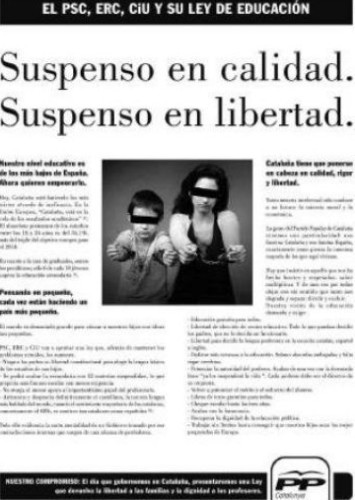 El anuncio, encabezado por el lema "Suspenso en calidad. Suspenso en libertad", se enmarca en la campaña que ha emprendido el PP en contra de la futura Ley de Educación impulsada por el Gobierno catalán que excluye la enseñanza en castellano en las aulas.