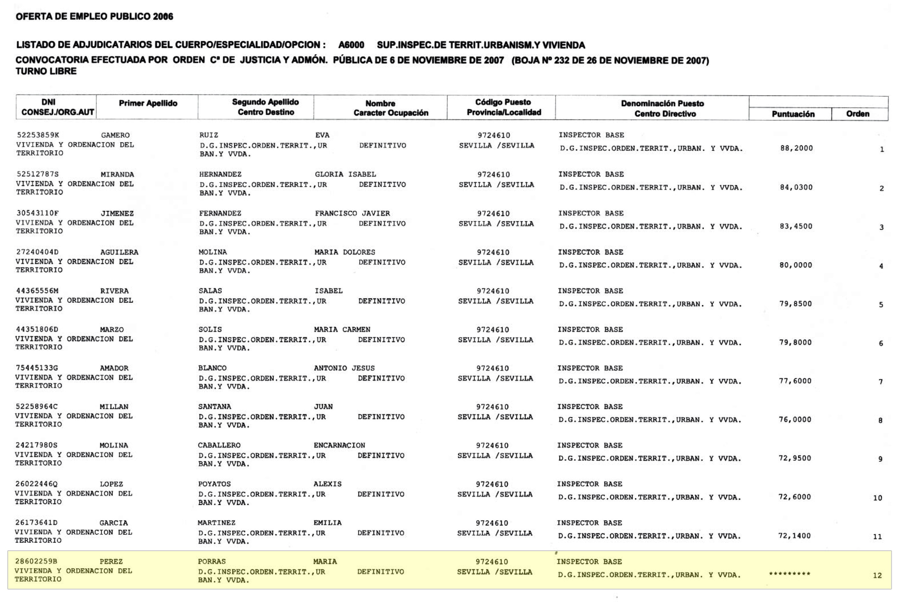 El concurso oposición era para las plazas superiores del Personal Inspector de Territorio, Urbanismo y Vivienda y en aquel momento, el director general de Ordenación del territorio, Urbanismo y Vivienda era José Ortiz Mallol.