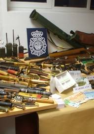 LD (EFE) La Policía Nacional detuvo en Madrid a dos hombres que presuntamente traficaban con droga pero los agentes no tenían constancia de que escondían en su domicilio un auténtico arsenal compuesto por un lanzacohetes, un obús con la carga completa, varias escopetas y pistolas y diferentes katanas y machetes. Al final lo que menos encontraron fue droga.