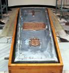 L D (EFE) "Ioannes Pavlvs PP II. 16.X.1978-2.IV.2005" son las únicas letras y números grabados en la losa de mármol, proveniente de la famosa montaña de mármol de Carrara, en el noroeste italiano. La losa mide 2,20 metros de largo por 1,20 metros de ancho y está dispuesta de manera que los fieles puedan verla y leer lo escrito con facilidad. Las letras, grandes, han sido doradas y el nombre del Papa ha sido escrito en latín siguiendo la tradición. Las letras "PP" significan "Papa Pontifex". Bajo el nombre aparecen las fechas de cuando fue elegido Pontífice, el 16 de octubre de 1978, y las del día de su muerte, el 2 de abril pasado. En la parte inferior de la losa ha sido esculpido el símbolo de Cristo.