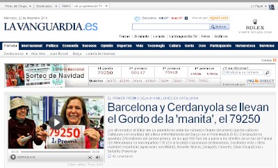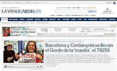 El periódico del conde de Godó dice que "los aficionados al fútbol ven un paralelismo entre los números finales del premio que ha caído en Catalunya y el resultado del último enfrentamiento del Barça con el Real Madrid (5-0)".