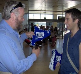 "Cataluña es un pequeño país" con "más de mil años de historia" con una "lengua y cultura propia". Reconocen, no obstante, que actualmente Cataluña es "una Comunidad Autónoma dentro de España"; pero reclaman "apoyo internacional" para "lograr la libertad: nosotros queremos ser un estado miembro independiente dentro de la Unión Europea". Dicho esto, aseguran que "nosotros deseamos dar la bienvenida a los extranjeros y enseñarles nuestra tierra". Y terminan apuntando: "Nosotros esperamos que descubráis Cataluña como la gran nación que es. Os deseamos una buena estancia y recordar: Cataluña no es España (en caracteres en mayúscula).