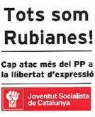 (Libertad Digital) Las Juventudes del PSC ponen a disposición de sus simpatizantes una dirección de correo electrónico para solicitar la camiseta con el "Tots som Rubianes!" por el precio de nueve euros. Como muestra, han colocado la fotografía del dirigente de la organización con la camiseta en la Diada de Cataluña. Junto a él se dejaron fotografiar líderes del PSC como Clos, Chacón o Montilla.