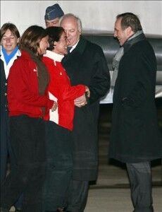 Nada más aterrizar el avión subieron a bordo un psicólogo acompañado de los familiares que han acudido a recibir a la médico leonesa Mercedes García. Mientras, a pie de pista, les esperan para recibirlas el ministro de Asuntos Exteriores y Cooperación, Miguel Ángel Moratinos, el ministro de Defensa, José Antonio Alonso, el embajador argentino en España, Carlos Betini, y el alcalde de la localidad leonesa de Cuadros, Marcos Martínez. A la base aérea de Torrejón de Ardoz han acudido a recibir a Mercedes García sus hermanos, las esposas de estos, y los sobrinos de García. En la base no se encontraba ningún familiar de la enfermera argentina Pilar Bauza.
