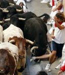 Esta circunstancia no impidió sin embargo que siguieran su camino, a pesar de que el que abría la manada hizo un derrote por su derecha que provocó la caída de varios corredores en mitad de la calle Estafeta. Mientras, el toro rezagado siguió su carrera sin prestar atención a los mozos, que con los huecos abiertos entre los bureles pudieron intercalarse entre los animales y lucirse delante de sus astas.