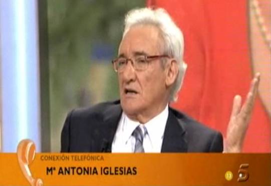 Terminada esta pausa, y con los tertulianos en plena forma para proseguir con el festival de halagos, hacía entrada la llamada estrella de la noche: María Antonia Iglesias, que desde el hospital no quería perder su turno de exaltación.