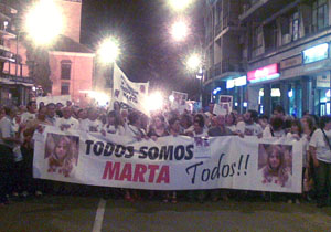 Si fueron pocos los manifestantes, fueron miles los que observaban el paso de la marcha desde los balcones. Lo fundamental: pedir a la policía y a la justicia que no dejen de buscar a Marta. Y ante el peligro de que el caso se parezca al del "padre Coraje" de Jerez, con los asesinos de su hijo por la calle, se anuncian acciones más organizadas y sistemáticas.