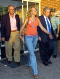 Yagüe, que fue la primera en salir, se mostró muy emocionada y acompañada en todo momento por su novio, no realizó declaraciones a la prensa. La ex alcaldesa vestía toda de blanco y llevaba unas gafas de sol.