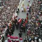 Miles de fieles, que se agolpaban alrededor del pasillo abierto en la plaza camino del templo vaticano desde horas antes, asistieron con emoción al paso del Papa Wojtyla y muchos de ellos prorrumpieron en aplausos. También pudieron contemplar el solemne traslado las decenas de miles de personas que esperan en los aledaños de San Pedro a que se formen las filas para poder entrar en la Basílica a dar su último adiós al Pontífice.