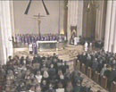 A las puertas de la catedral se congregaron más de un millar de personas, según fuentes de la Policía Nacional, en solidaridad con las víctimas de los atentados de Madrid. Un gigantesco crespón negro presidía el presbiterio del templo, que acogía a unas 3.500 personas, de las que un millar se sentaron en los bancos, según fuentes del Arzobispado de Madrid. Su delegado de Medios, Manuel Brú, indicó que hasta 4.000 periodistas de todo el mundo habían solicitado poder cubrir la CONVOceremonia.