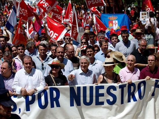 En una segunda cabecera, compuesta por partidos políticos y con el mismo lema que la anterior, se encontraban el presidente de Castilla-La Mancha, José María Barreda; la consejera de Economía y Hacienda, María Luisa Araújo; el consejero de Agricultura y Desarrollo Rural, José Luis Martínez Guijarro; el consejero de Vivienda y Ordenación del Territorio, Julián Sánchez Pingarrón; el secretario regional del PP, Vicente Tirado; el alcalde de Toledo, Emiliano García-Page; los portavoces del PP y PSOE en las Cortes, Ana Guarinos y Santiago Moreno, entre otras autoridades políticas.