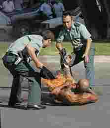 Este hombre de origen rumano, de entre cuarenta y cincuenta años, se roció con la gasolina que portaba en una botella de agua de litro y medio. Tras varios minutos amenazando con prenderse fuego y pese a los esfuerzos de disuadirle de su mujer y otros dos familiares, el hombre utilizó un mechero para encender la gasolina entre los gritos de las personas presentes.