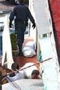 Los bomberos, tras comprobar que el agua procedía del piso de arriba, cortaron la llave general de la finca y subieron a la vivienda de la que procedía el agua, pero no pudieron acceder a él porque nadie respondía a sus llamadas y porque no contaban con autorización judicial para derribar la puerta, por lo que contactaron con el presidente para que éste localizase a los vecinos.