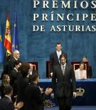 Todos los premiados escucharon con atención el discurso del Príncipe de Asturias que hizo mención de los logros de los ocho galardonados. Al final del acto, como es habitual la banda de gaitas "Ciudad de Oviedo" entonó el "Asturias patria Querida" con todos los asistentes en pie.