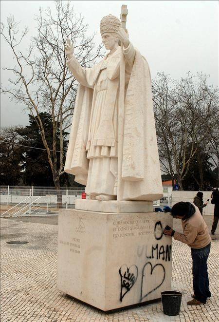 Las autoridades del santuario portugués de Fátima denunciaron este lunes actos vandálicos en cuatro estatuas de la iglesia de la Santísima Trinidad, después de detectar varios "graffiti" con referencias al Islám.