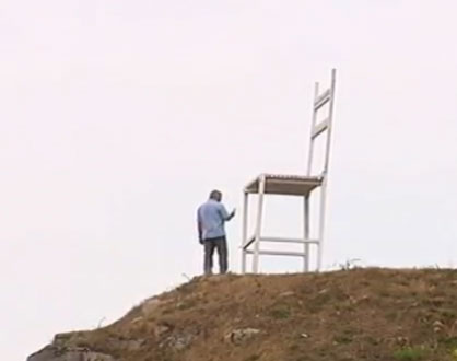 Esto no es más que una copia de la silla y mesa instalados en Parliament Hill, Londres en 2006, y que se supone que es un tipo de arte llamado “Installation Art”, o Arte de Instalación, que busca situar objetos comunes de tamaño desproporcionado en lugares poco frecuentes.