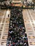 L D (Agencias) Pocas esperanzas de contemplar el cadáver del Pontífice puede tener la gente que apenas ha comenzado a unirse a las larguísimas filas que comienzan incluso en puntos como el Puente de Umberto I, distante a unos dos kilómetros de la Basílica de San Pedro. A las ocho de la tarde, las autoridades recomendaron a los peregrinos no ponerse en la fila ya que hay una media de 20 horas de espera. Las previsiones de los organizadores se están quedando cortas y ya se habla de que se superarán con creces los dos millones visitantes calculados inicialmente, hasta el punto de que el prefecto (delegado del Gobierno) de Roma, Achille Serra, ha apuntado la cifra de cuatro millones de peregrinos.