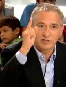 Es el momento de Julia Otero, que se lo pone en bandeja: "tú llamas a Acebes y se lo explicas" y le reprocha cínicamente "ya estás haciendo política". Sardá recoge el guante y dirigiéndose a los sufridos niños que asisten a la proclama de los dos presentadores exclama en dos ocasiones: "¡No votéis a Acebes!" El colofón, los chiquillos, animados por los mayores, aplauden a Sardá entre las risotadas de Julia Otero.