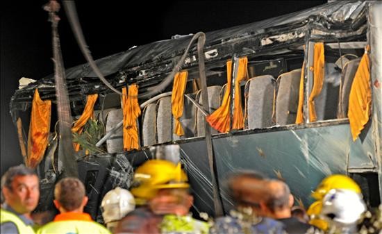 Tras salirse de la carretera, el autobús volcó por su lado izquierdo y dejó a varias personas atrapadas en su interior. Los Bomberos incluso tuvieron que mover el vehículo para conseguir rescatar dos de los cadáveres que se encontraban totalmente inmovilizados en el interior.