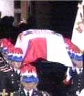 El paso del féretro con los restos de Rainiero, portado a hombros por diez carabineros, como él mismo deseaba, por la puerta de honor del Palacio fue uno de los momentos más emotivos de la jornada. Previamente, seis miembros del Palacio habían trasladado el cuerpo desde la capilla palatina, donde estuvo expuesto en los últimos días, al patio de honor, donde recibió el silencioso homenaje de todo el personal palaciego con rosas blancas y rojas, los colores de Mónaco.