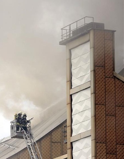 L D (EFE) La columna de humo de casi treinta metros que llegó a provocar el incendio, visible a una distancia de varios kilómetros, remitió tras seis horas de trabajo, pero Jens-Peter Wilke, del cuerpo de Bomberos, precisó que la labor de extinción podría extenderse hasta mañana.