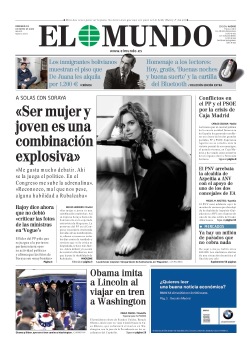 (Libertad Digital) Tras el revuelo provocado por la sugerente imagen de la portavoz parlamentaria que publicó El Mundo el pasado viernes como adelanto del Magazine, que incluso ha llevado a rectificar a Rajoy, este domingo el diario vuelve a colocar en portada una fotografía de la portavoz en una postura distinta pero con idéntico atuendo y actitud. El titular que escoge el diario para ilustrar la imagen es una de las declaraciones que hizo la dirigente popular a Nieves Herrero: "Ser mujer y joven es una combinación explosiva".