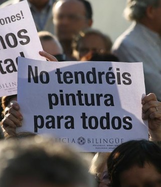 L D (Agencias) Los participantes en este acto portaban pancartas en las que se recogían lemas como "Primero las personas, después los idiomas" o "En Galicia, libertad". UPyD y Vigueses por la libertad se sumaron a la convocatoria a la que también acudió el presidente del PPdeG, Alberto Núñez Feijóo; la senadora y concejal'popular Corina Porro y otros cargos de este partido.