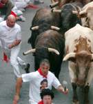 Tras él, un segundo grupo con tres toros y un cabestro y posteriormente, el resto de las reses. Con menos corredores en este tramo, era más fácil para los mozos situarse delante de los astados, aunque también se registraron muchas caídas y golpes.
