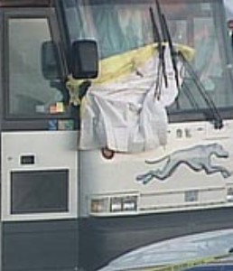 Según Caton, cuando el conductor del autobús, un camionero que paró para ayudar y él mismo subieron de nuevo al vehículo para ver qué estaba pasando, el atacante estaba "cortando tranquilamente a la víctima. Casi lo había decapitado y lo estaba destripando".