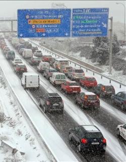 Las retenciones, en un día en el que el tráfico no era intenso, han ido incrementándose de forma paulatina y a las nueve y media de la mañana había 260 kilómetros de una docena de carreteras de Madrid con serios problemas de circulación achacables directa o indirectamente a la nieve.