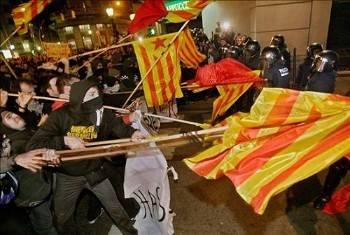 En este sentido, botellas, mesas, sombrillas y demás enseres volaron desde las mesas de las terrazas ubicadas en las calles por las que transcurrió la manifestación, especialmente en la Vía Laietana y en el Born, cuando la policía cerró el paso a los estudiantes en su intento de dirigirse hacia la Plaza de Sant Jaume.A la vista de los incidentes ocurridos, la Comisión de Defensa de los Derechos de la Persona del Colegio de Abogados de Barcelona y la Federación de Asociaciones de Vecinos de Barcelona han denunciando la "violencia extrema, propia de otras épocas e intolerable en un sistema democrático", empleada por los Mossos. Por este motivo, se han quejado de que la actuación policial fue "desproporcionada" y han considerado que las agresiones a los periodistas suponen un ataque al derecho de información de los ciudadanos.