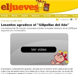 (Libertad Digital) En un vídeo que pretende ser satírico producido recientemente desde la revista El Jueves, mediante una imitación de la voz de Federico Jiménez Losantos, se le atribuye a la caricatura del periodista la siguiente frase: