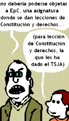 Los guionistas del adoctrinamiento no se andan con sutilezas. En algunos manuales escolares –Serbal, Praxis, Santillana,...–, las viñetas funcionan como un chillón y eficaz rotulador fosforescente, remachando el catecismo con el mazo de unas imágenes parvularias de sonrojante simplicidad incluso para alumnos con dificultades de aprendizaje como los que el Informe PISA ha encontrado amontonados en las escuelas de la LOE.