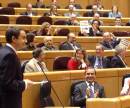 L D (Agencias) La polémica suscitada en torno a la presencia del valenciano en la UE como lengua diferenciada del catalán llegó este miércoles al Senado. Con motivo de la comparecencia del presidente del Ejecutivo en la cámara alta, el senador popular de Valencia, José María Chiquillo, había presentado el pasado jueves "en tiempo y forma una pregunta al Gobierno para que manifestara su posición respecto al respeto a las lenguas oficiales reconocidas en los estatutos catalán, vasco, gallego y valenciano". Zapatero eludió responder a esta pregunta lo que provocó el enfado de los senadores populares que desplegaron en el pleno unos cartele que decían: "El valenciano, una lengua europea".