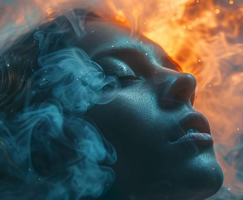 La cara de una mujer con gesto relajado, de placer o bienestar. Está ajena al humo y el fuego que la acechan. Esa es la imagen con la que el experto en sectas Luis Santamaría del Río nos advierte de los peligros de la conocida como ‘New Age’. Un fenómeno que engloba técnicas de meditación como el yoga y el mindfulness, terapias espirituales y/o energéticas como el reiki o las flores de Bach, propuestas psicológicas alternativas como la Gestalt o las constelaciones familiares y todo tipo de prácticas chamánicas o esotéricas. Todas ellas son aparentemente inofensivas, pero -como veremos a continuación- entrañan sus riesgos.