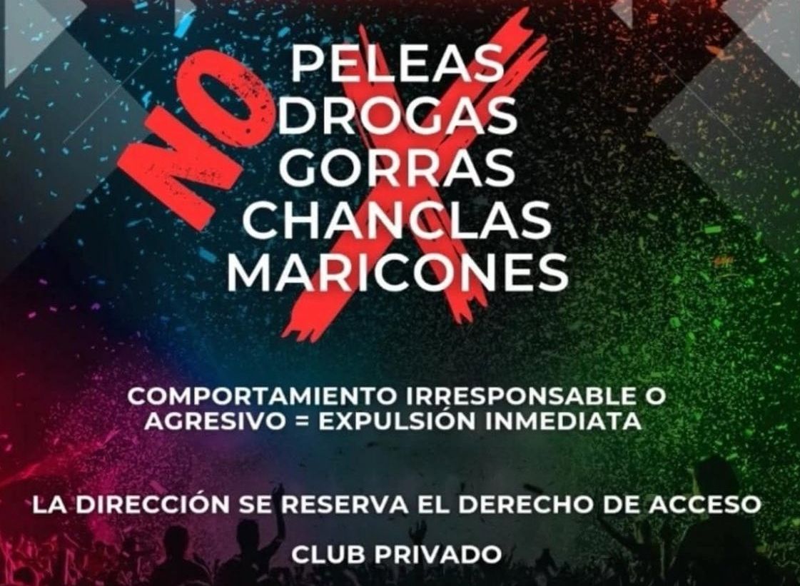 Hasta aquí el reglamento podría parecer propio de determinados clubs nocturnos, si no fuese porque al final del cartel se podía leer claramente que se quedaba prohibido el acceso a "maricones".