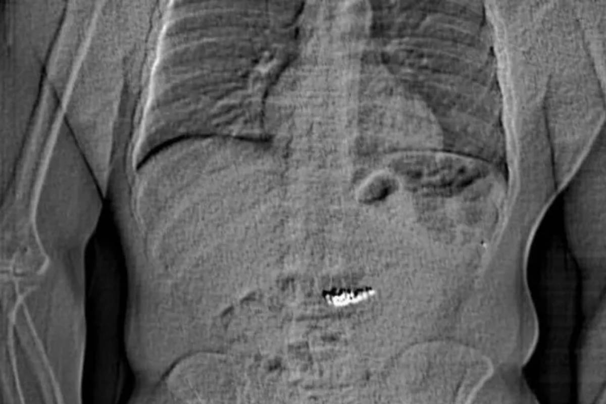 Como la policía había visto a Gilder tragarse algo justo antes de ser detenido…. Se les ocurrió realizarle una radiografía del torso. En la misma se puede observar claramente una masa blanca que brillaba intensamente contra el fondo gris de su tracto digestivo. "Se sospecha que estos objetos extraños son los pendientes de Tiffany & Co que se llevaron en el robo, pero será necesario recogerlos… después de que los expulse", decía el informe de arresto del departamento. Por el momento, la policía de Orlando no ha confirmado si ya se habían recuperado los pendientes o en qué estado se encontraban.