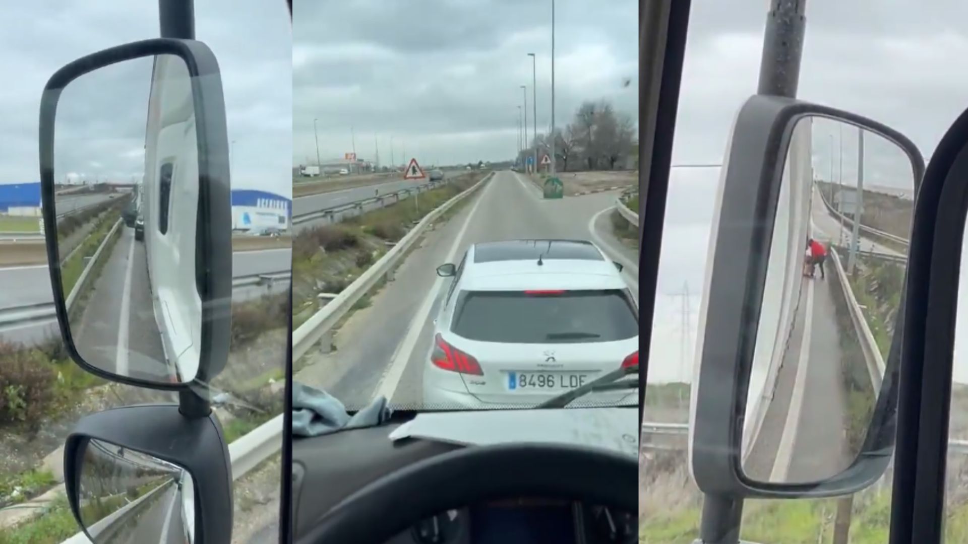 "Ya, otra vez me están robando. ¿Qué es esto, tío? No puede ser. Mira, mira, ese hombre me está grabando. Me están quitando el palé, tío, joder", decía mientras accionaba su cláxon para intentar ahuyentar a los ladrones y buscar ayuda. Como la que vio desde el otro lado de la carretera, cuando un compañero del gremio grababa desde su propio camión todo lo sucedido.
