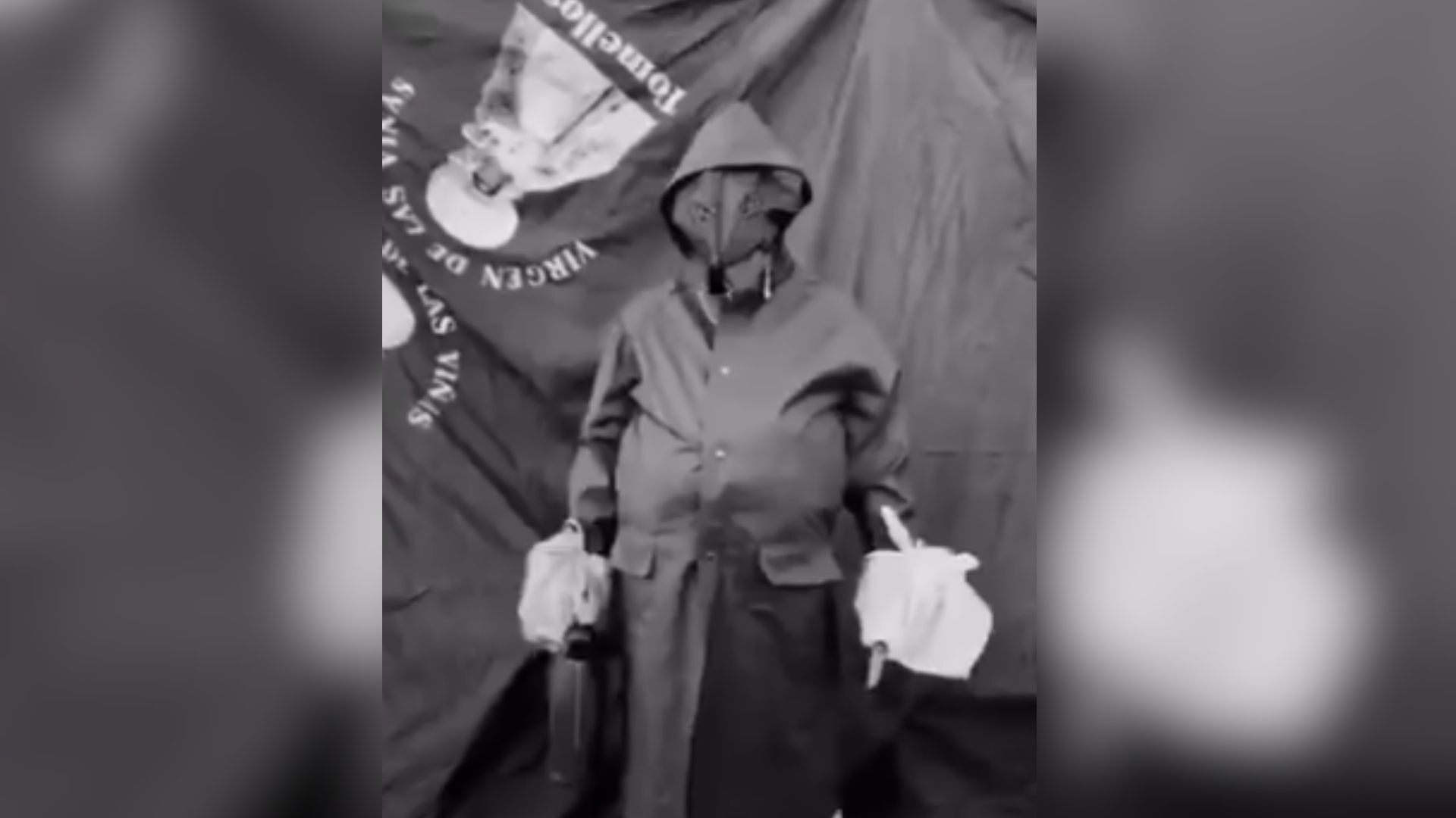 ▶️Un hombre hurtó el pañuelo de hierbas típico de #Tomelloso (#CiudadReal), lo exhibió en un vídeo disfrazado, con voz distorsionada y cuchillo en mano, exigiendo 5 bidones de "calimocho" a cambio.