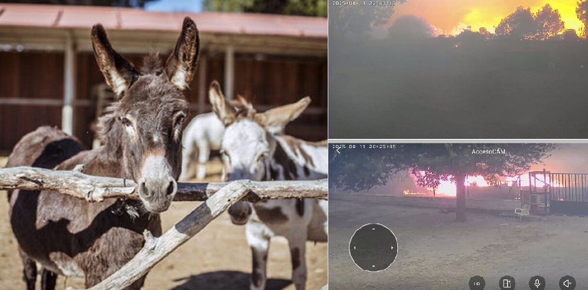 El incendio desatado este lunes en la localidad madrileña de Tres Cantos en el que ha muerto un hombre ha alcanzado las instalaciones de Burrolandia, manteniendo en vilo a sus trabajadores y voluntarios durante toda la noche. Afortunadamente, los medios técnicos con los que cuenta la protectora de animales en la actualidad ha permitido a sus responsables tener una aproximación de lo que estaba ocurriendo a través de las cámaras de seguridad y abrir la puerta a los animales por control remoto.