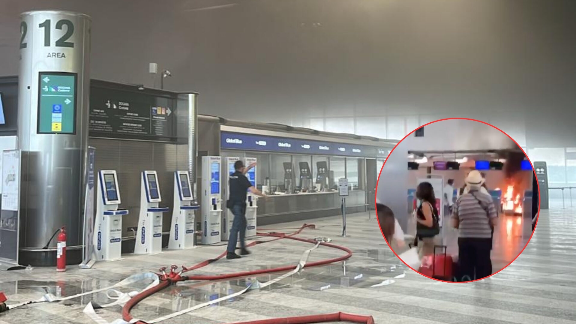 Panico a Malpensa, esagitato prende a martellate e dà fuoco a un check-in. Un passeggero ha dato in escandescenza e poi ha appiccato l'incendio. Fermato dalla polizia. Terminal 1 evacuato per precauzion pic.twitter.com/TJWCj792Zy